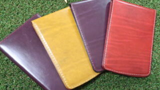 お知らせ スコアカードホルダー在庫追加 つい先日、黒x赤のスコアカードホルダーの在庫を追加しましたが、ベーシックラインのスコアカードホルダーはすべて売り切れてしまい急いで制作にとりかかっておりました。急遽、制作途中だったスコアカードホルダーを仕上げました。緑x白、茶x白のスコアカ... 2021.12.15 お知らせスコアカードホルダー