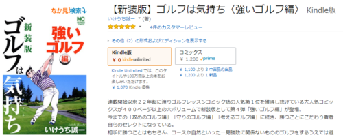 ゴルフマンガ好きに朗報。【新装版】ゴルフは気持ち がAmazon Kindle Unlimitedで読み放題に