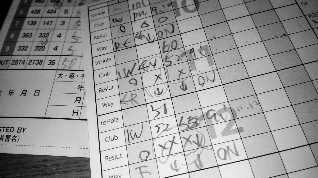 一打一打のショットしたクラブ、残り距離、ショット結果などを記録しておくんです。