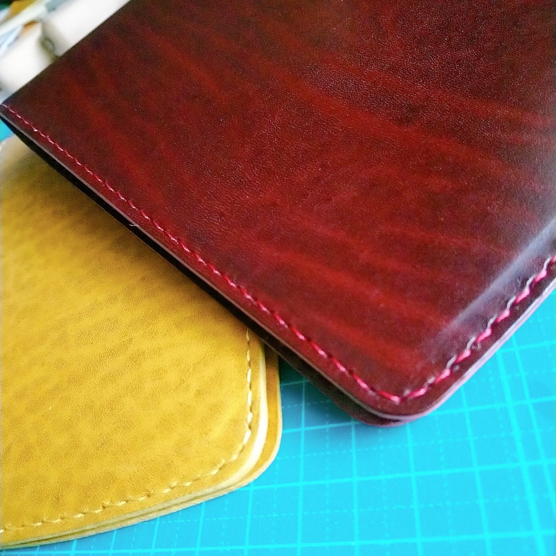手縫いで仕上げましたがまだ完成とはならず、これからコバ(革の切り口)の処理をします。
