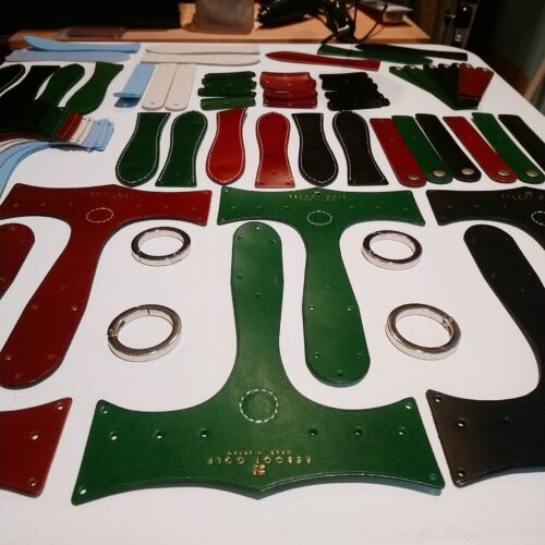 平面上で納得できるデザインにできたら、今度は実際に革で試作して立体にします。