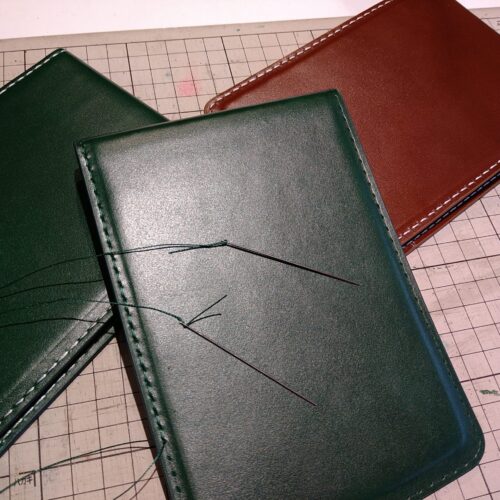 今回のオーダーはグリーンの革にイエローのステッチ&刻印です。
