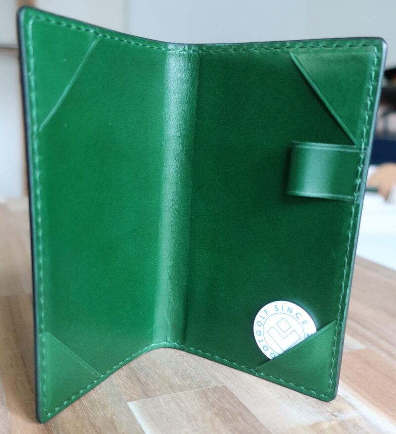 本革製スコアカードホルダーのオーダーの納品が終わりました。 オーダー事例 黒革+緑ステッチの渋いオーダー 横開き型のスコアカードホルダーにクラブ名(ゴルフ場名)と名前の刻印。 黒×緑の組み合わせが非常に渋いチョイス。 決して既製品には無い組合... -