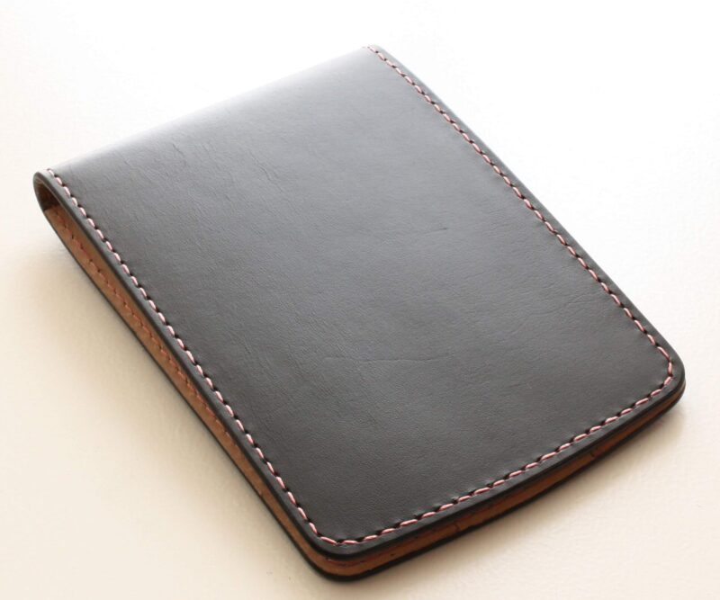 本革製スコアカードホルダー、外革黒、内革ナチュラル、ステッチピンクを1個在庫追加しました。 外側の革はセミアニリン仕上げです。 今後、この革のスコアカードホルダーの制作は未定ですので欲しい方はお早めにどうぞ。 -