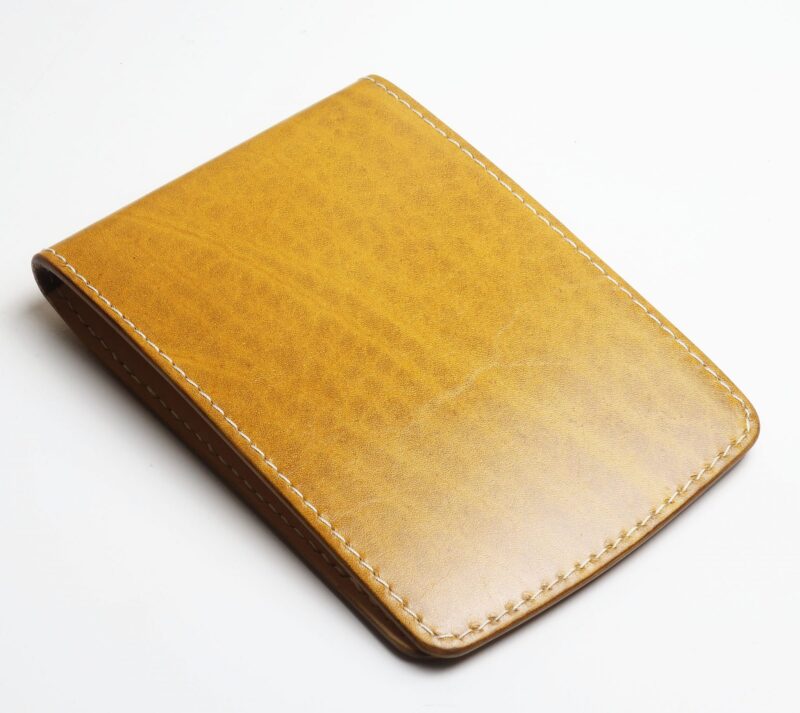 外革にベルギー製の高級革、ルガトショルダーを使った本革製スコアカードホルダーを発売しました。 このルガトショルダーはスジのような虎目(とらめ)という模様が美しい高級革です。 今回は黄色と茶色をひとつづつ仕上げました。 黄のルガトショルダーの...