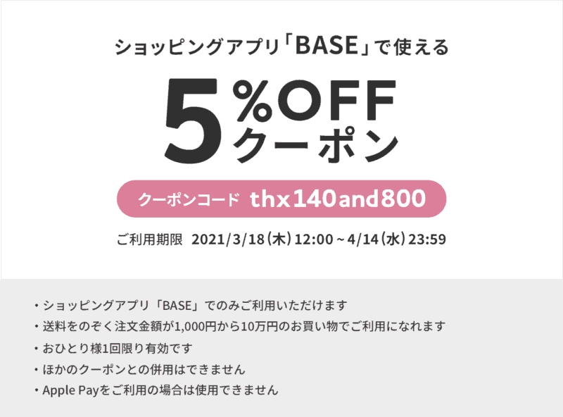 REBOOT GOLFウェブショップ本店はBASEというウェブショップ出店サービスを利用しておりますが、このテレビCMでもおなじみBASEでのウェブショップが140万ショップ開設されたということで、5%OFF割引クーポンが送られてきました。 1,000円以上、10万円の商... -